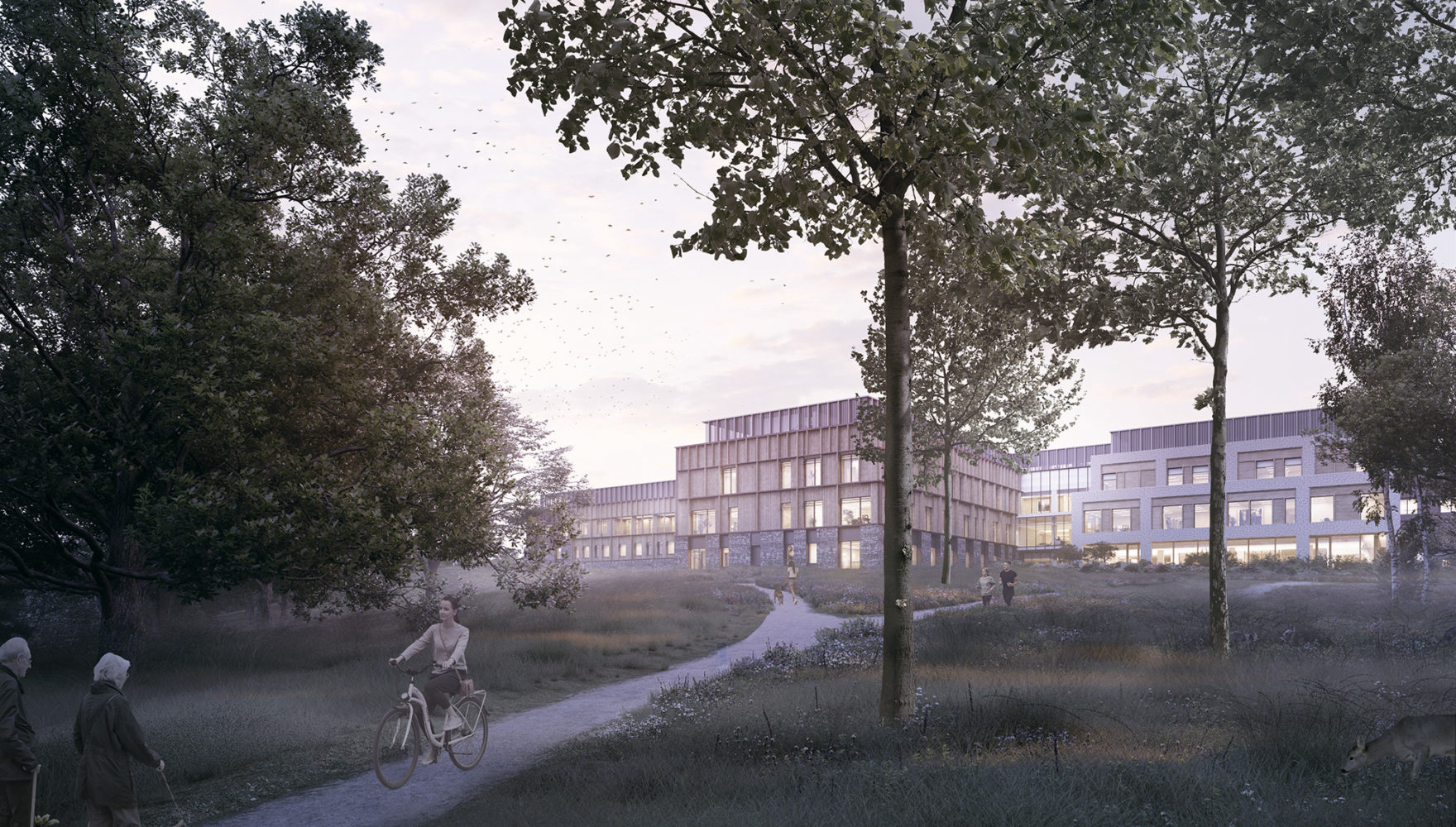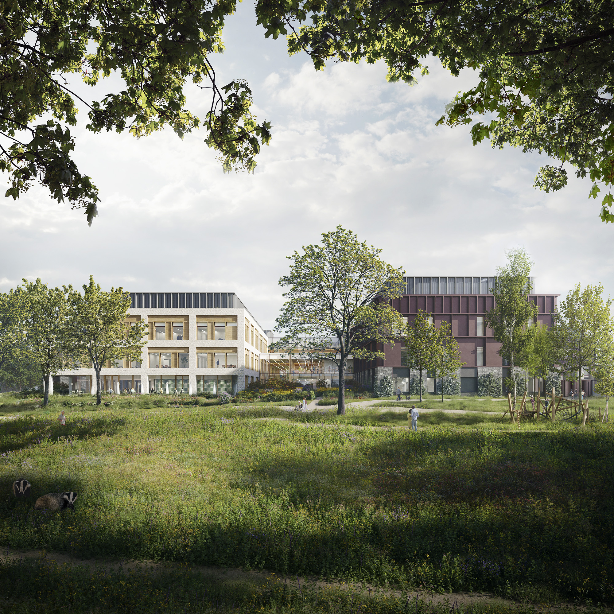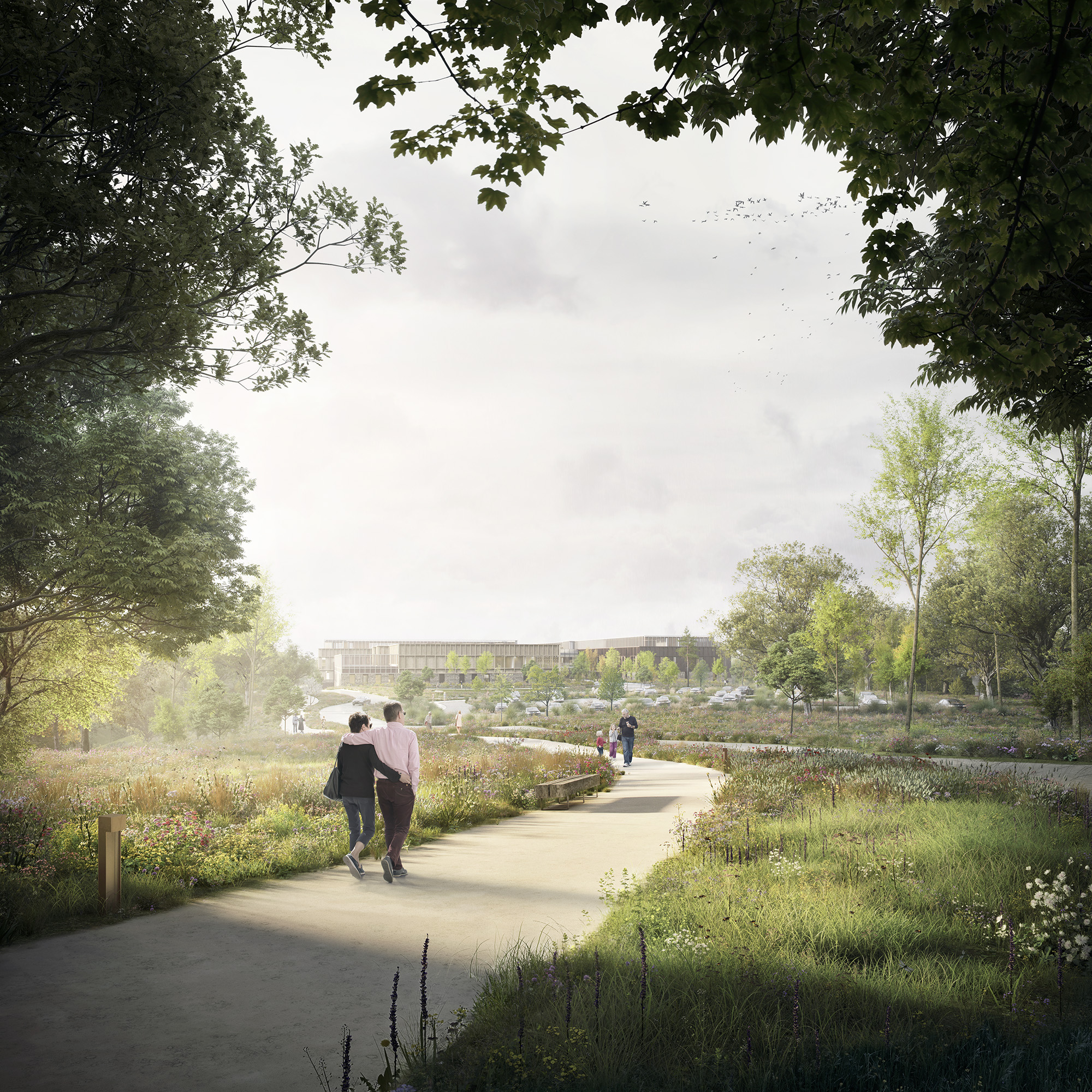 For starters, the development area is a greenfield site — and was one of designated importance for nature conservation, also adjoining other protected habitats and areas. This meets biophilic design criteria, in terms of health and well-being benefits for patients and staff, but also represents a development concern for the local community and wildlife groups.
