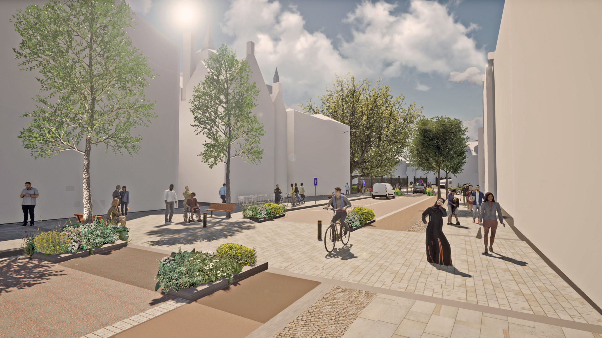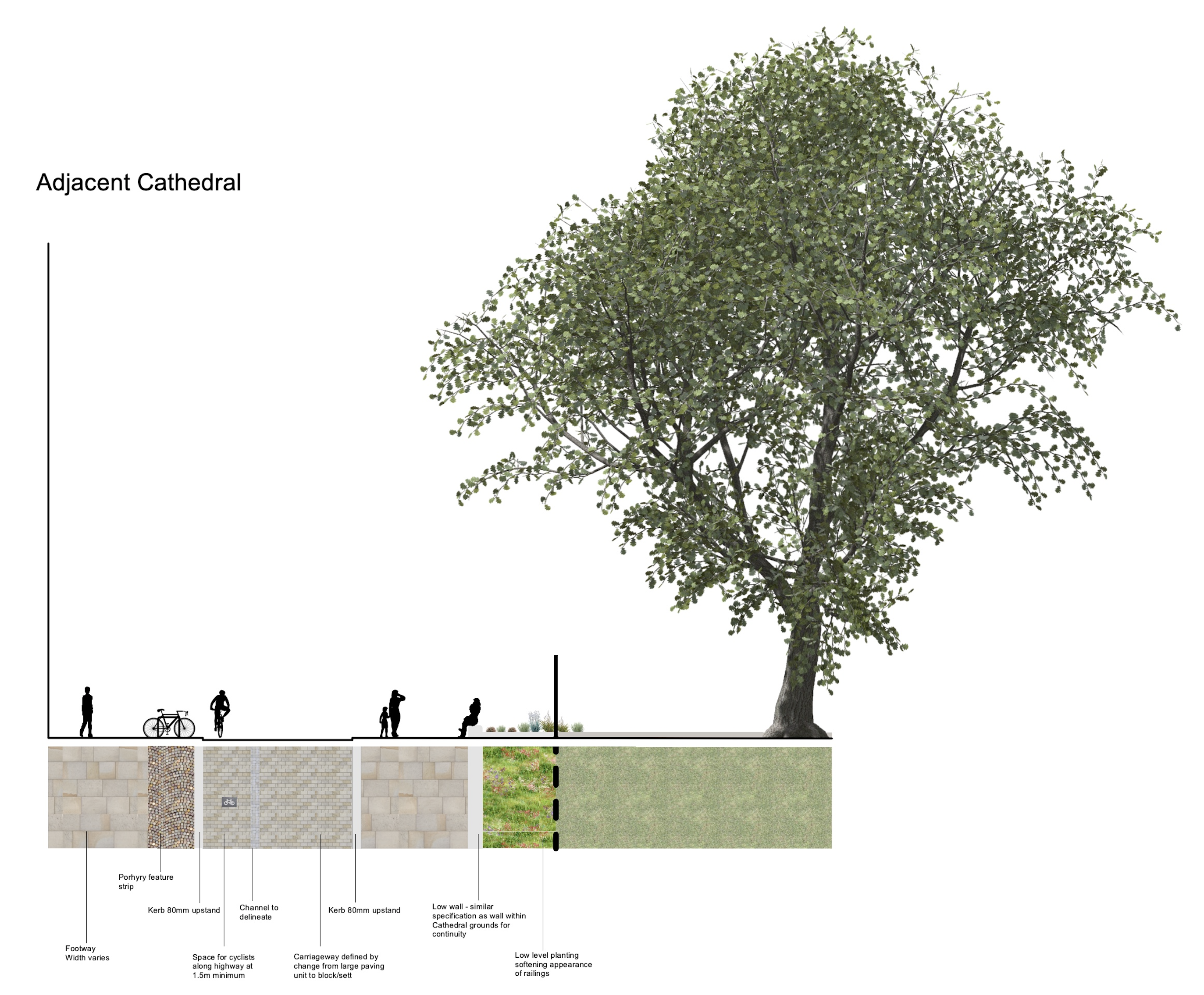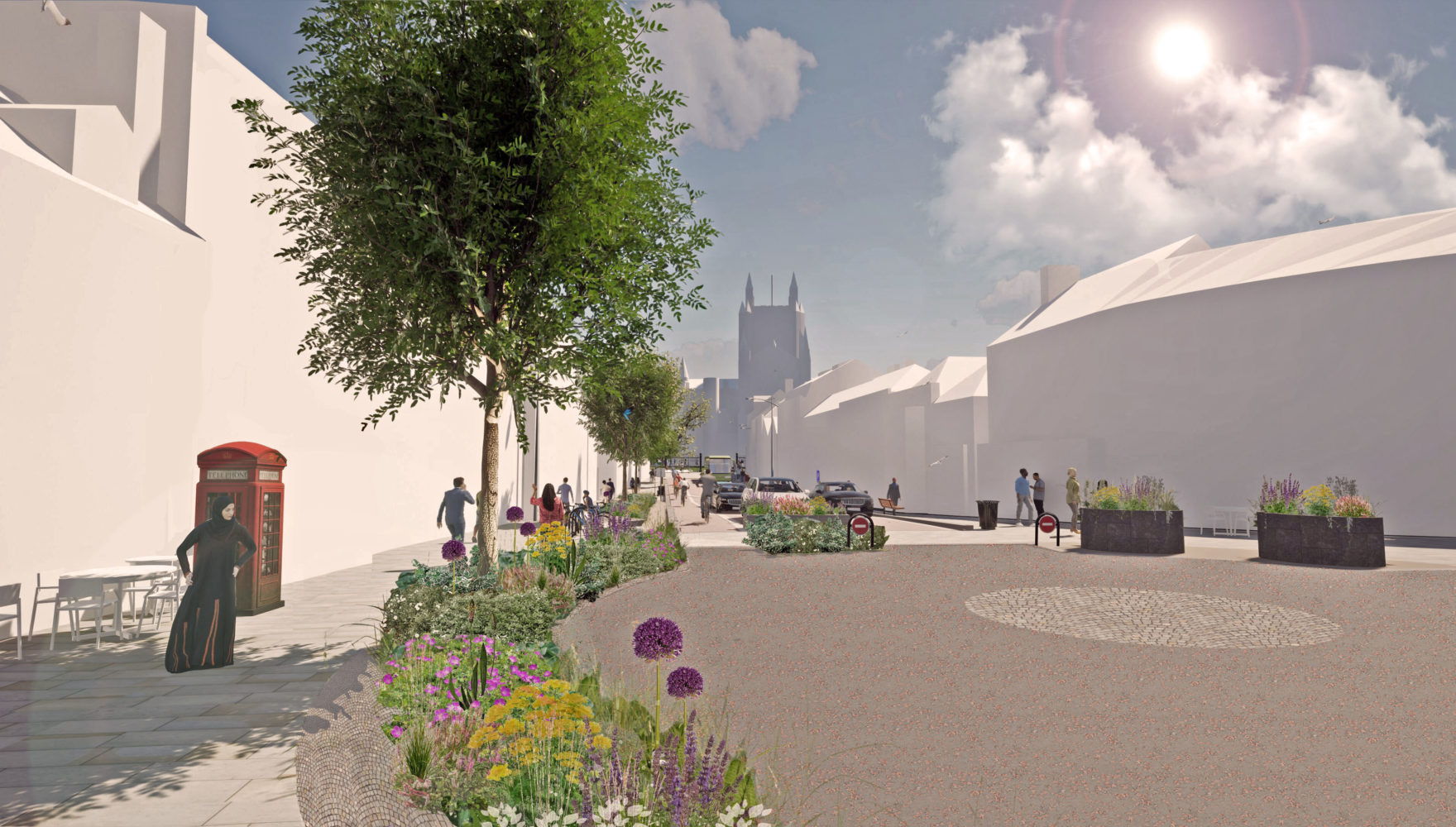 A challenging street re-design in the heart of a medieval Cathedral City which needs to adapt to changing priorities whilst also being respectful and authentic to it’s historic status.