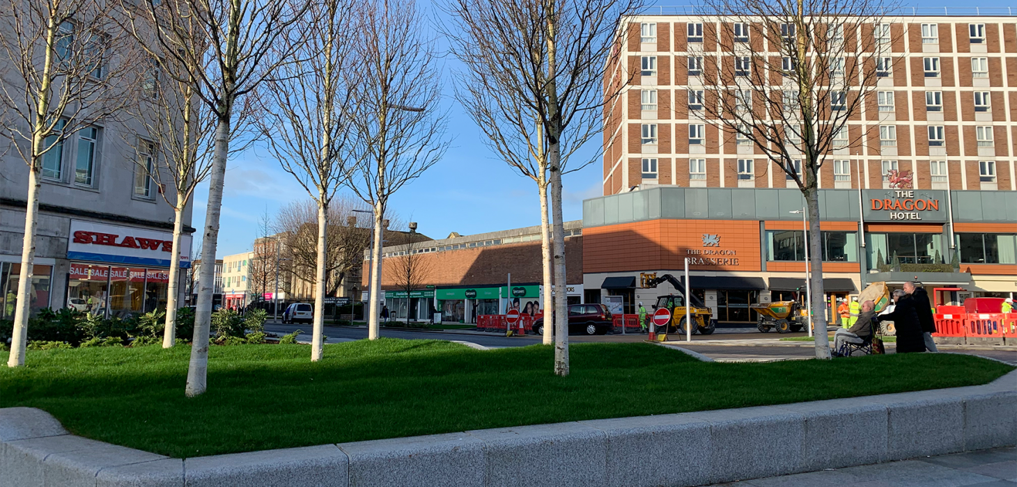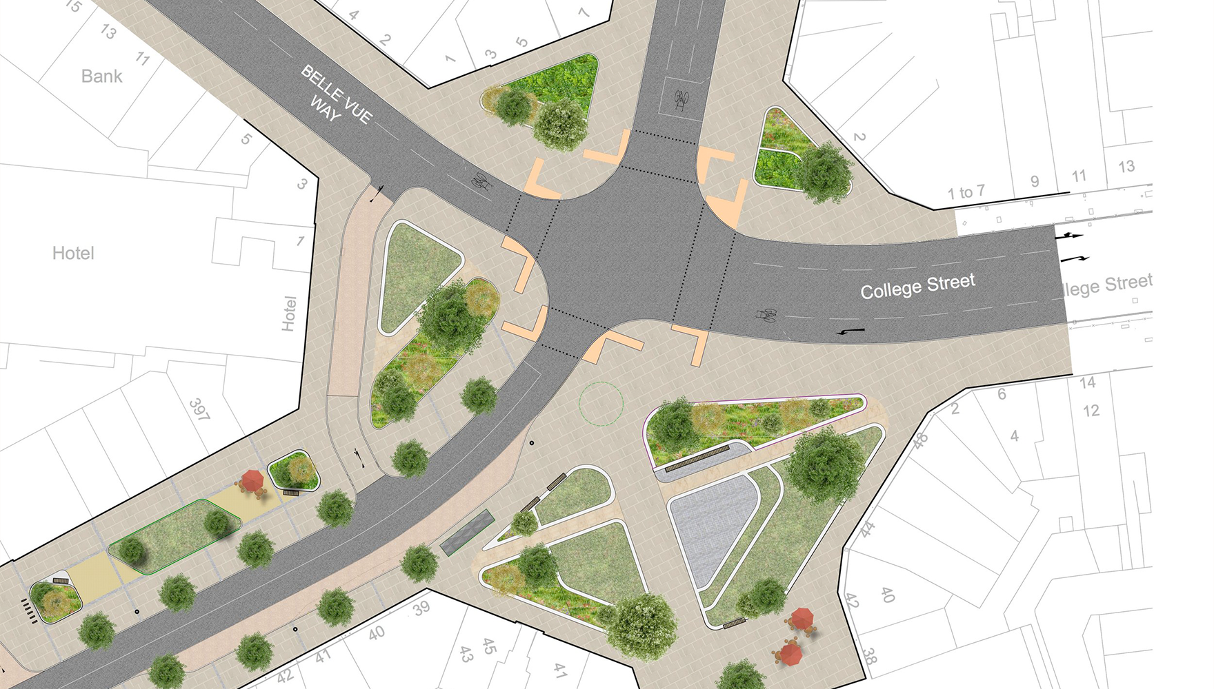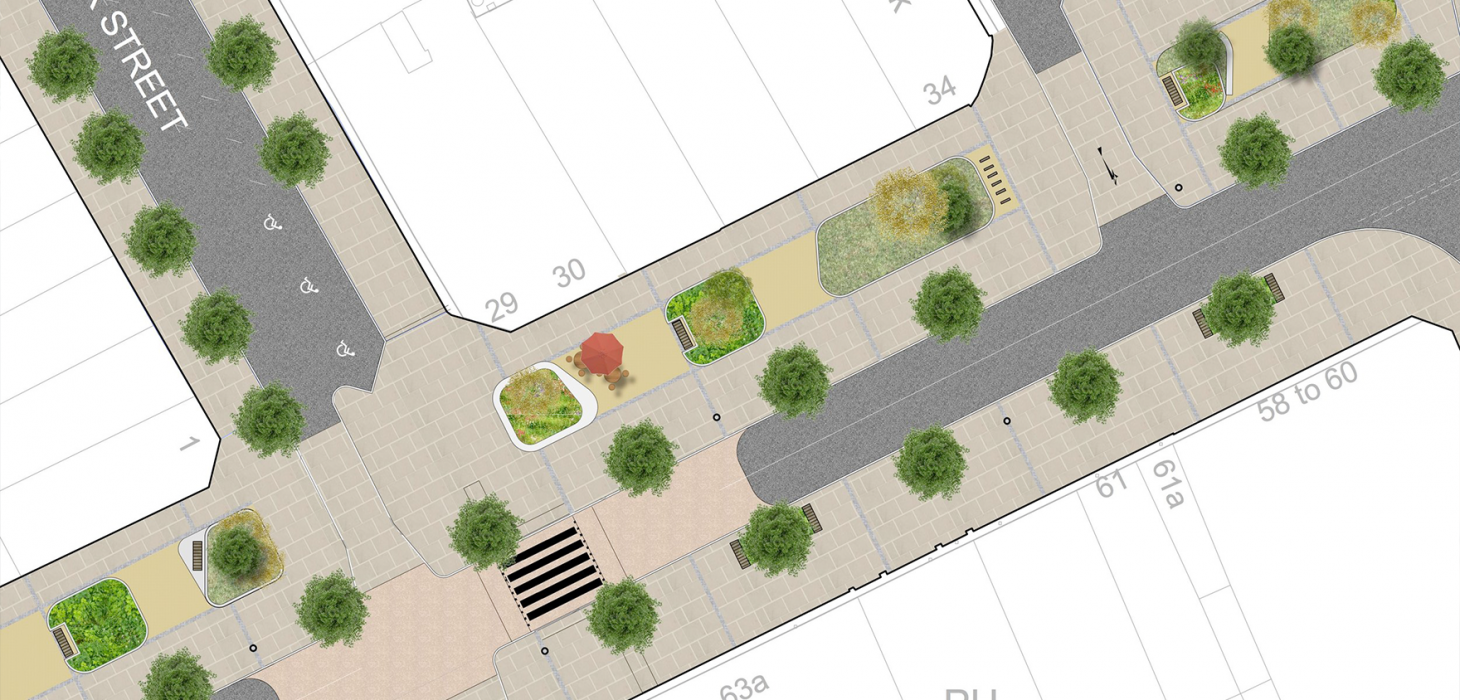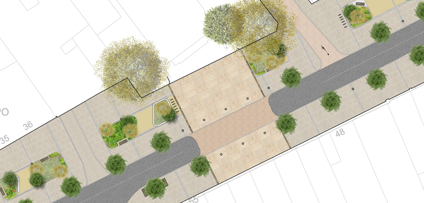 A £13m transformation of a formerly vehicle dominated road into a new green street.